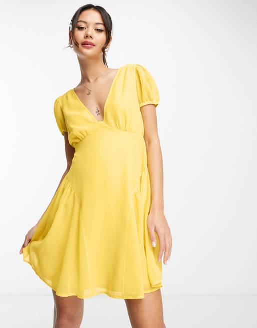 ASOS DESIGN short sleeve v-neck chiffon mini dress in yellow