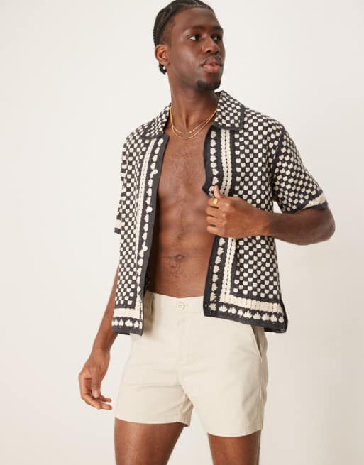 ASOS DESIGN shorter length skinny chino shorts in stone