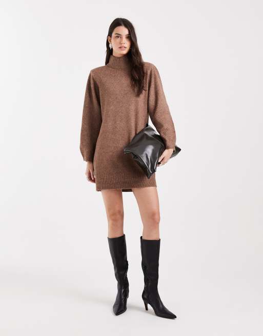 ASOS DESIGN shoulder pad extreme sleeve mini dress in chocolate
