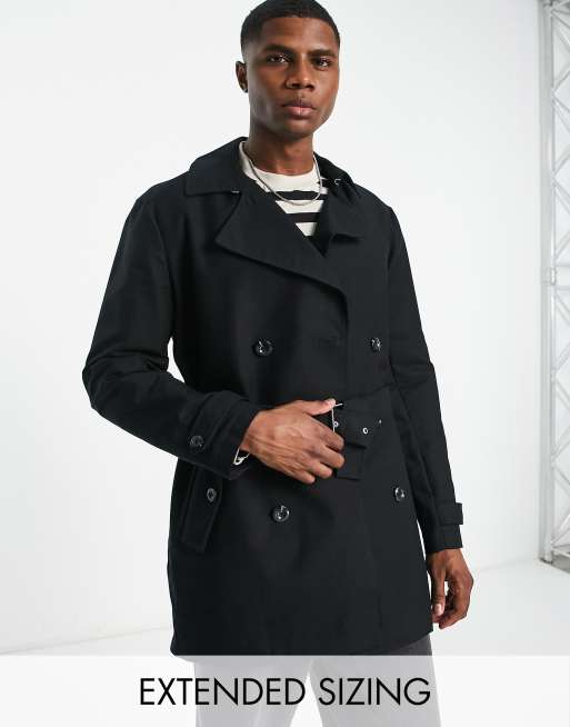 ASOS DESIGN shower resistant double breasted trench coat in black