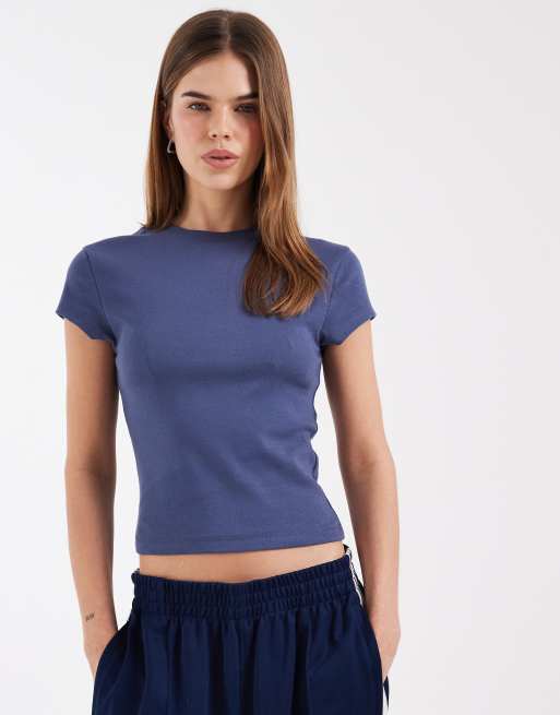 ASOS DESIGN shrunken tee with crew neck rib detail in light blue
