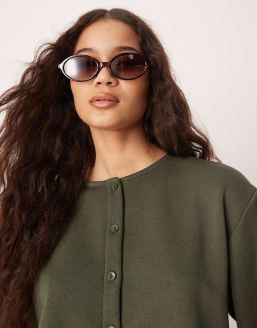 ASOS DESIGN silm oval sunglasses in tort with metal arms
