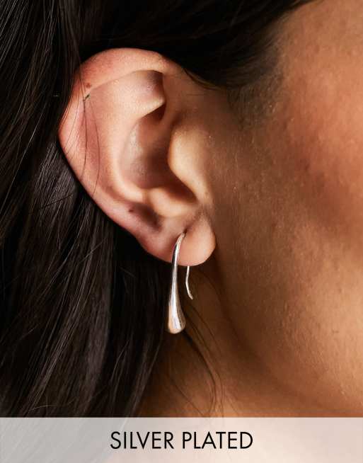 ASOS DESIGN silver plated drop earrings with pull through molten design