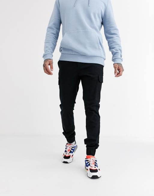 ASOS DESIGN skinny cargo cuffed trousers in black