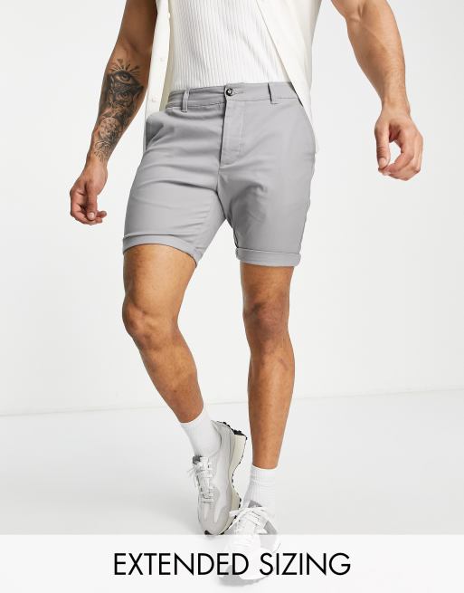 ASOS DESIGN skinny chino shorts in mid length in light grey