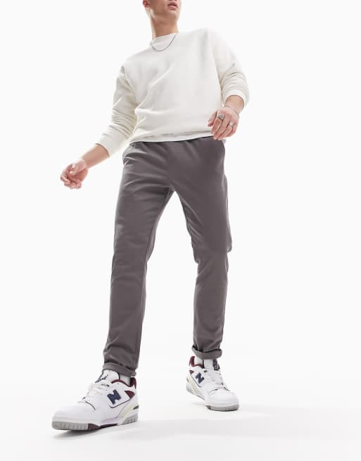 ASOS DESIGN skinny chinos with elasticated waist in charcoal