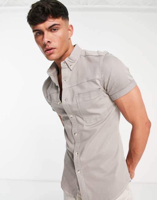 ASOS DESIGN skinny denim shirt in light grey