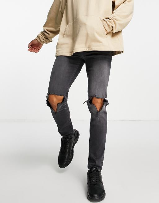 ASOS DESIGN skinny jeans in washed black with knee rips
