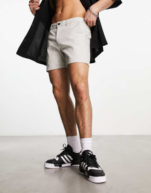 ASOS DESIGN skinny shorts in shorter length in grey