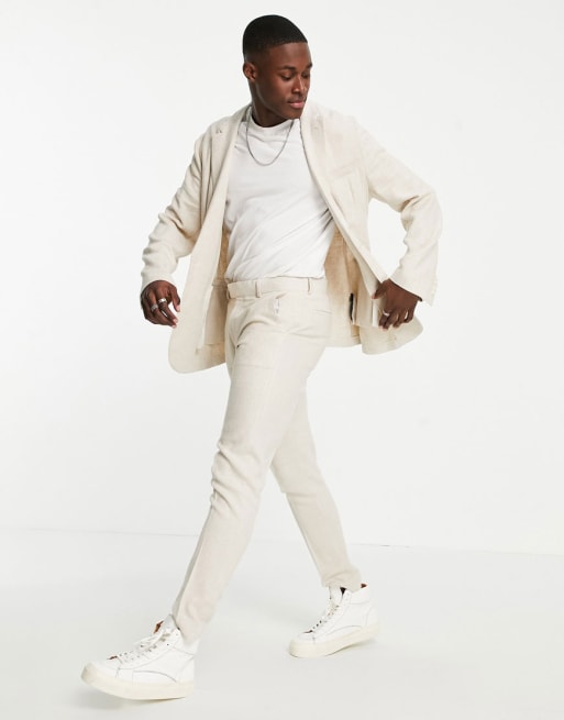 ASOS DESIGN skinny soft tailored suit in stone linen mix slub