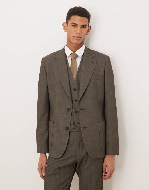 ASOS DESIGN skinny suit jacket in dark green wool look herringbone