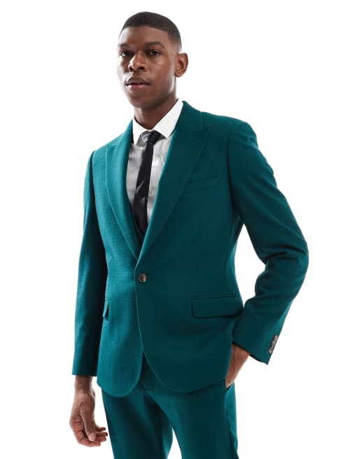 ASOS DESIGN skinny suit jacket in green slub texture