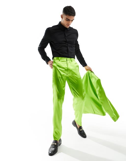 ASOS DESIGN skinny suit trouser in green satin