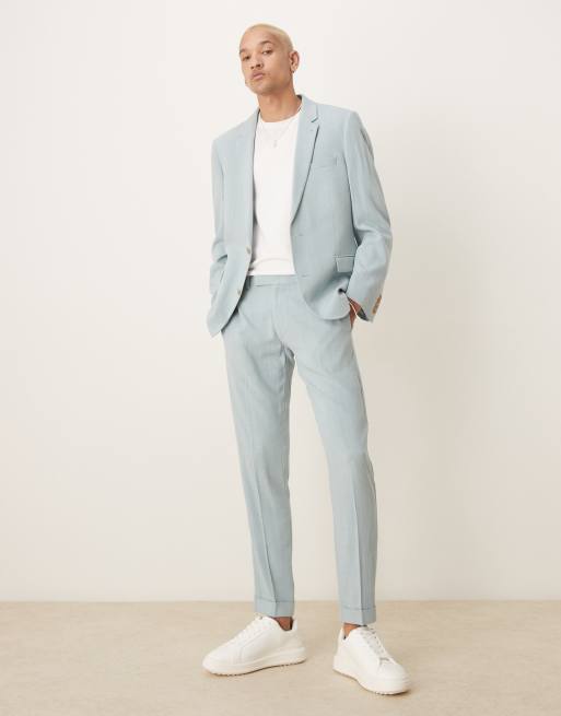 ASOS DESIGN skinny suit trousers with linen in light blue microtexture