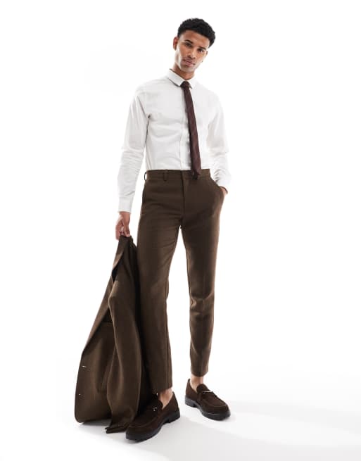 ASOS DESIGN skinny suit trousers with wool in brown twill