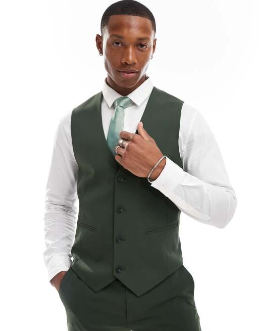 ASOS DESIGN skinny suit waistcoat in dark green