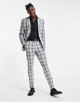 ASOS DESIGN skinny suit with prince of wales check in grey