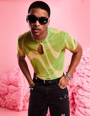 ASOS DESIGN skinny t-shirt in green mesh print with front cut out - LGREEN