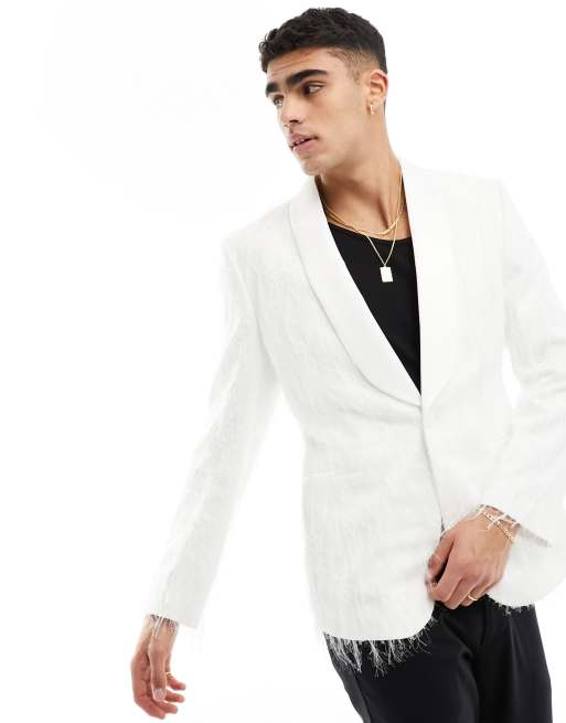 ASOS DESIGN skinny textured blazer in white