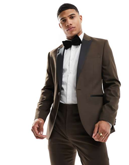 ASOS DESIGN skinny tuxedo suit jacket in brown