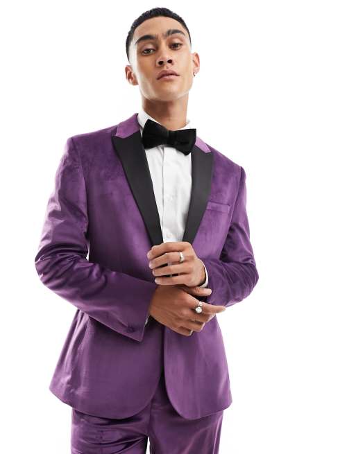 ASOS DESIGN skinny velvet tuxedo suit jacket in purple