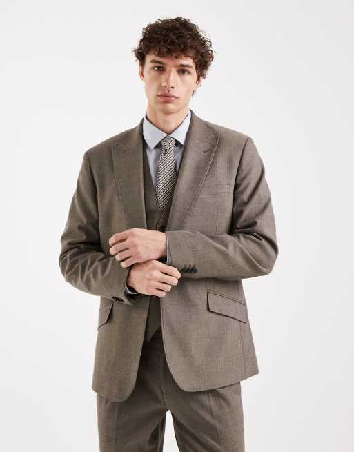 ASOS DESIGN skinny wool look suit jacket in khaki herringbone flannel