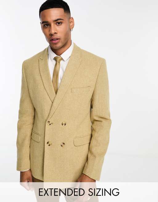 ASOS DESIGN skinny wool mix blazer in stone herringbone