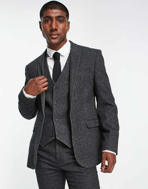 ASOS DESIGN skinny wool mix suit jacket in charcoal herringbone