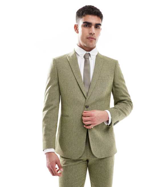 ASOS DESIGN skinny wool mix suit jacket in olive basketweave texture
