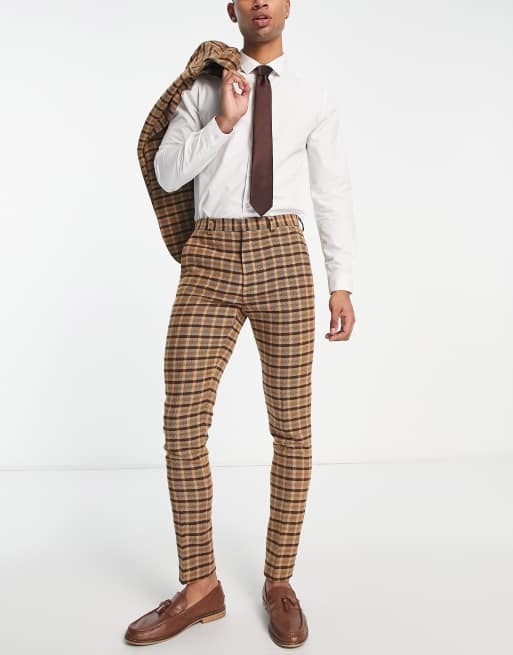 ASOS DESIGN skinny wool mix suit trouser in brown check