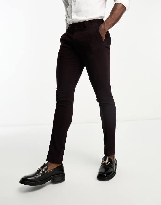ASOS DESIGN skinny wool mix suit trousers in herringbone in burgundy