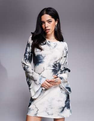 ASOS DESIGN slash neck biased mini in blow up floral print