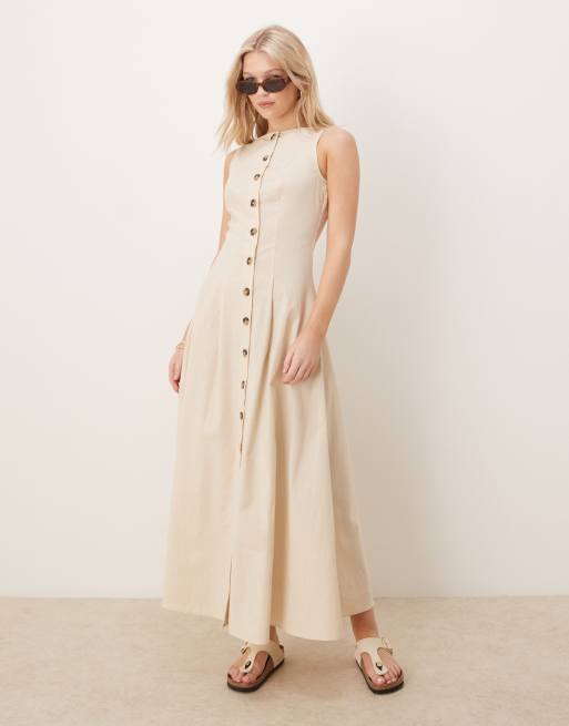 ASOS DESIGN slash neck button down waistcoat maxi dress in oatmeal