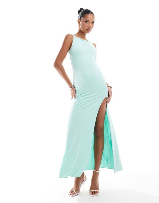 ASOS DESIGN slash neck maxi dress with strappy back in mint