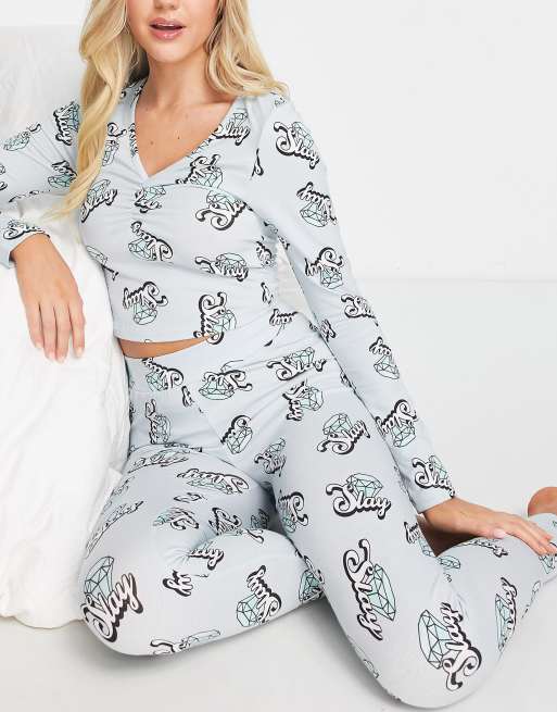 ASOS DESIGN slay long sleeve top & legging pyjama set in blue