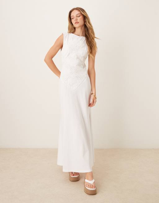 ASOS DESIGN sleeveless crochet patch maxi dress in white