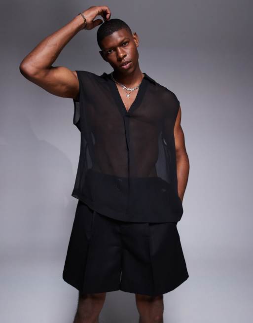 ASOS DESIGN sleeveless oversized overhead shirt in black