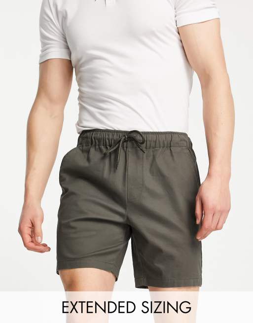 ASOS DESIGN slim chino shorts in mid length with elasticated waist in khaki