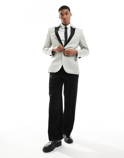 ASOS DESIGN slim contrast lapel tuxedo suit in black and silver
