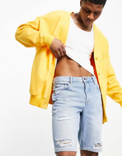ASOS DESIGN slim denim shorts in light wash with rips