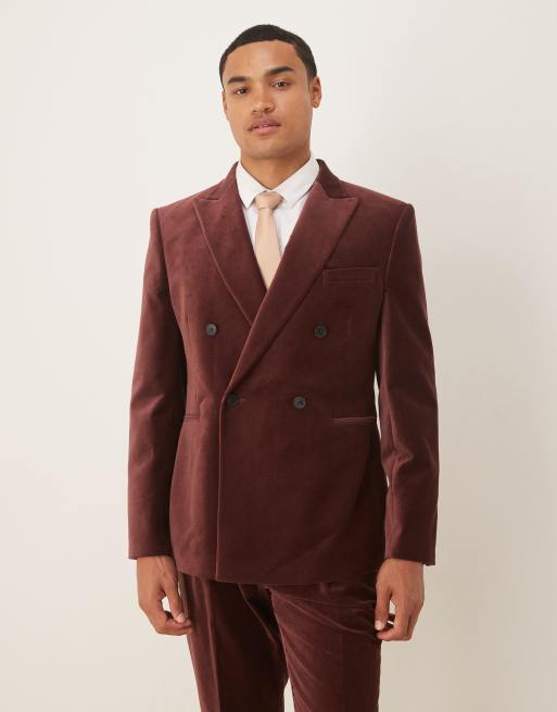 ASOS DESIGN slim double breasted suit jacket in dark brown cotton velvet