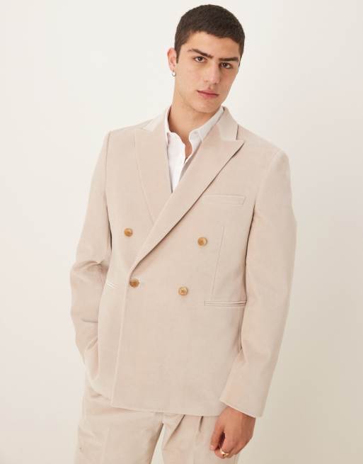 ASOS DESIGN slim double breasted suit jacket in stone lightweight cotton velvet - STONE