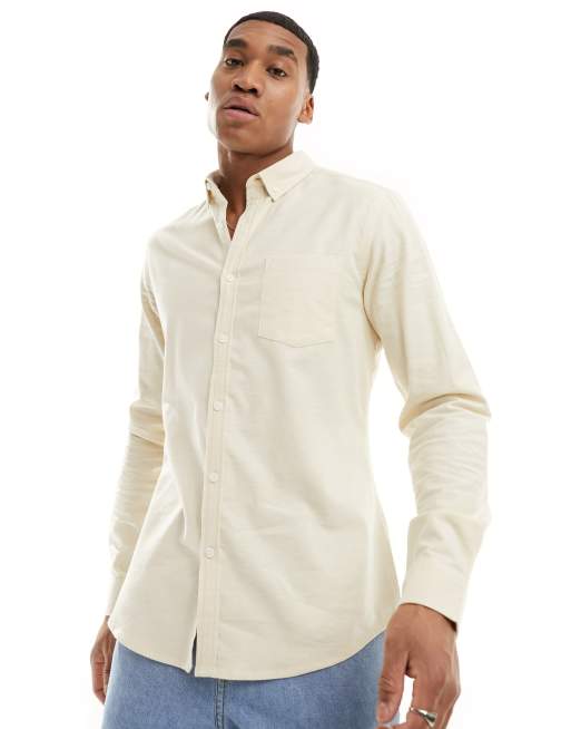 ASOS DESIGN slim fit oxford shirt in cream