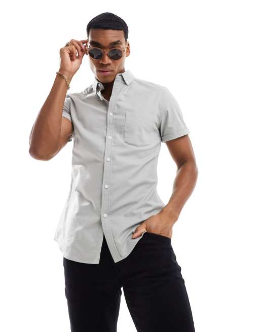 ASOS DESIGN slim fit oxford shirt in grey