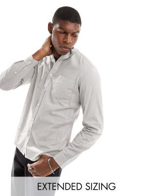 ASOS DESIGN slim fit oxford shirt with grandad collar in grey