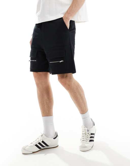 ASOS DESIGN slim fit utility shorts with front pocket detail in black