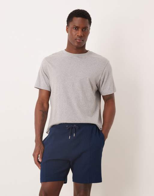 ASOS DESIGN slim fit waffle jersey short with pintuck in navy