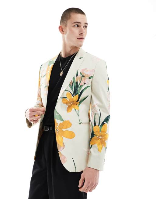 ASOS DESIGN slim floral printed blazer in white