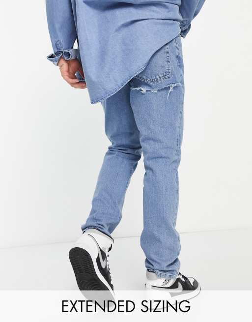 ASOS DESIGN slim jean in mid wash with bum rip