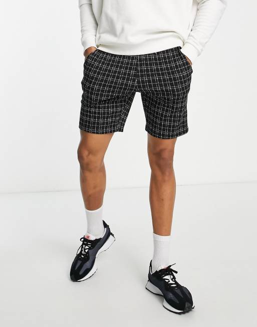 ASOS DESIGN slim jersey shorts in black & white check